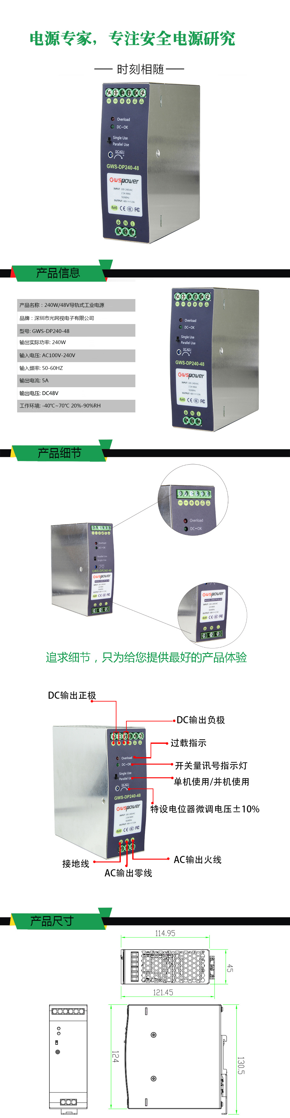 GWS-DP240-48 总功率 240W 输出 DC48V 5A