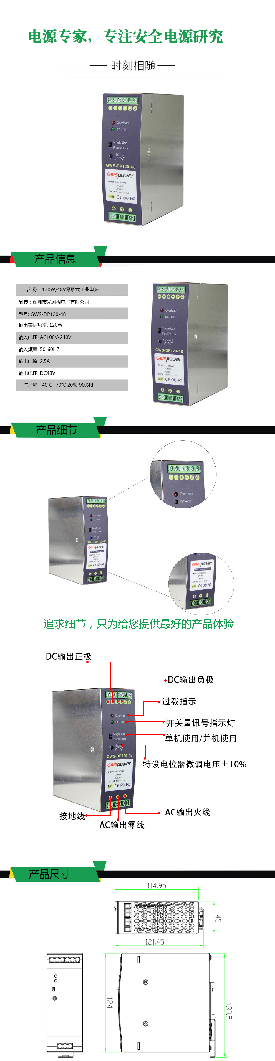 | 产品型号 | GWS-DP120-48 | GWS-DP120-24 |