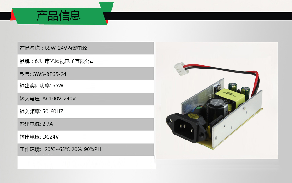 GWS-BP65-24 总功率 65W 输出 DC24V 2.7A
