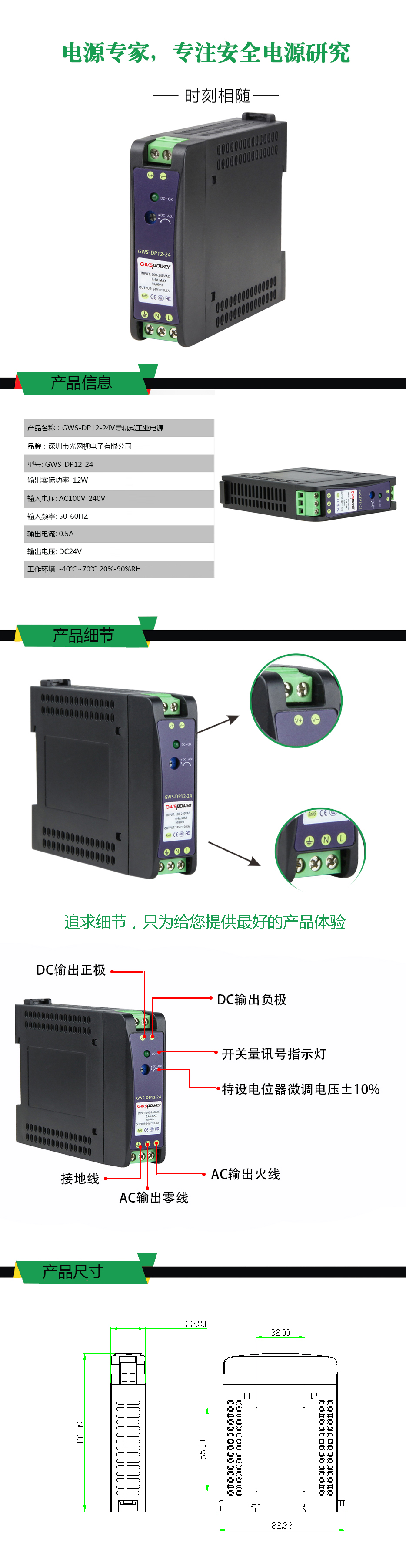 GWS-DP12-24 总功率12W 输出 DC24V 0.2A